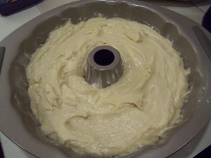 I had never used a tube pan for a dessert before…But then again, I had never made Pound Cake. I was wondering how far the cake would poof up once I baked it, and as it turns out, it does grow quite tall (and dense…I guess that explains its name).