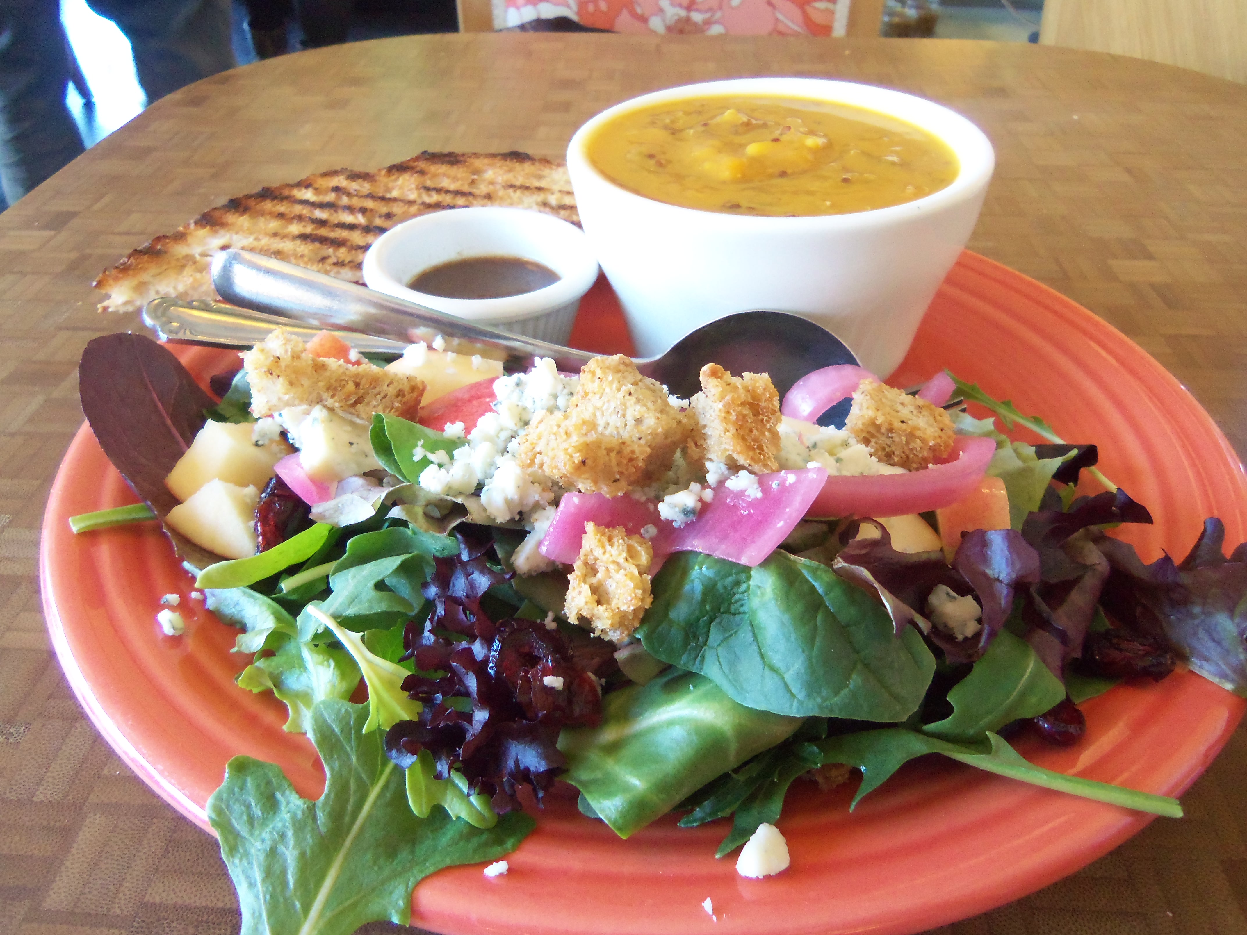 If you’re like me, you’re often indecisive…I look at a menu filled with things I love, and have trouble narrowing it down to one selection. Luckily, Foundation Grounds offers a pick 2 special, where you can choose half a sandwich, salad, quesadilla, or soup. That day, the soup special was Sweet Potato with Quinoa and Butternut Squash…so of course, I had to try it.