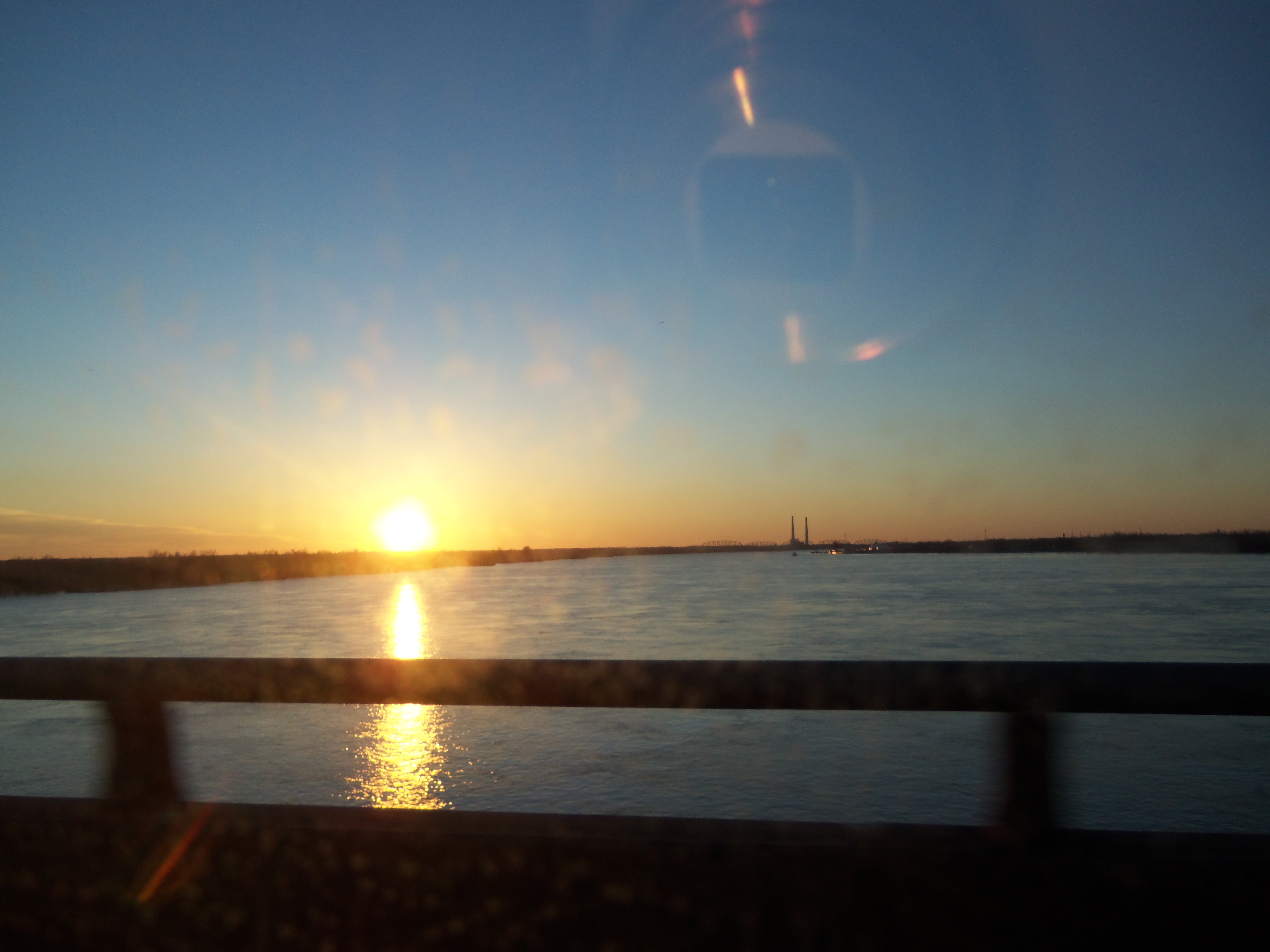 The further south we drove, though, the landscape began to change. Slowly, the terrain got more hilly, there were more deer on the side of the road, and lo and behold, we crossed some rivers. When we crossed the Ohio River, I had to take a picture of the sunset.