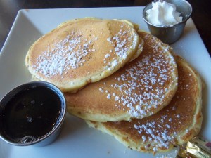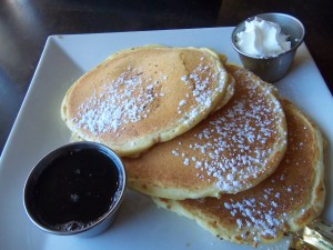But whatever the reason, the line was short, and we finally got a chance to try Fido’s delicious food. They serve breakfast all day, and my boyfriend and I both ordered the Buttermilk Banana Nut Pancakes.