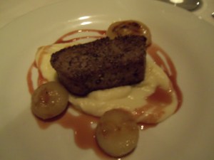 When the waiter brought my plate over to the table, I had a moment of panic. The tuna steak looked exactly like real steak; and I don’t eat red meat. It has been a few years since the last time I ate a beef filet, but the tuna steak tasted surprisingly similar…Maybe it was the dusting of black peppercorn on the outside, and the texture and color of the meat. But the whole experience was a little strange…
