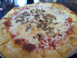 The best part about the pizza is the crust. It’s brushed with butter, sprinkled with Parmesan cheese, and slightly doughy. I used a fork and a knife for the rest of the pizza (the slices are big), but when it came time for the crust, I abandoned my silverware. You might even consider eating the pizza backwards…