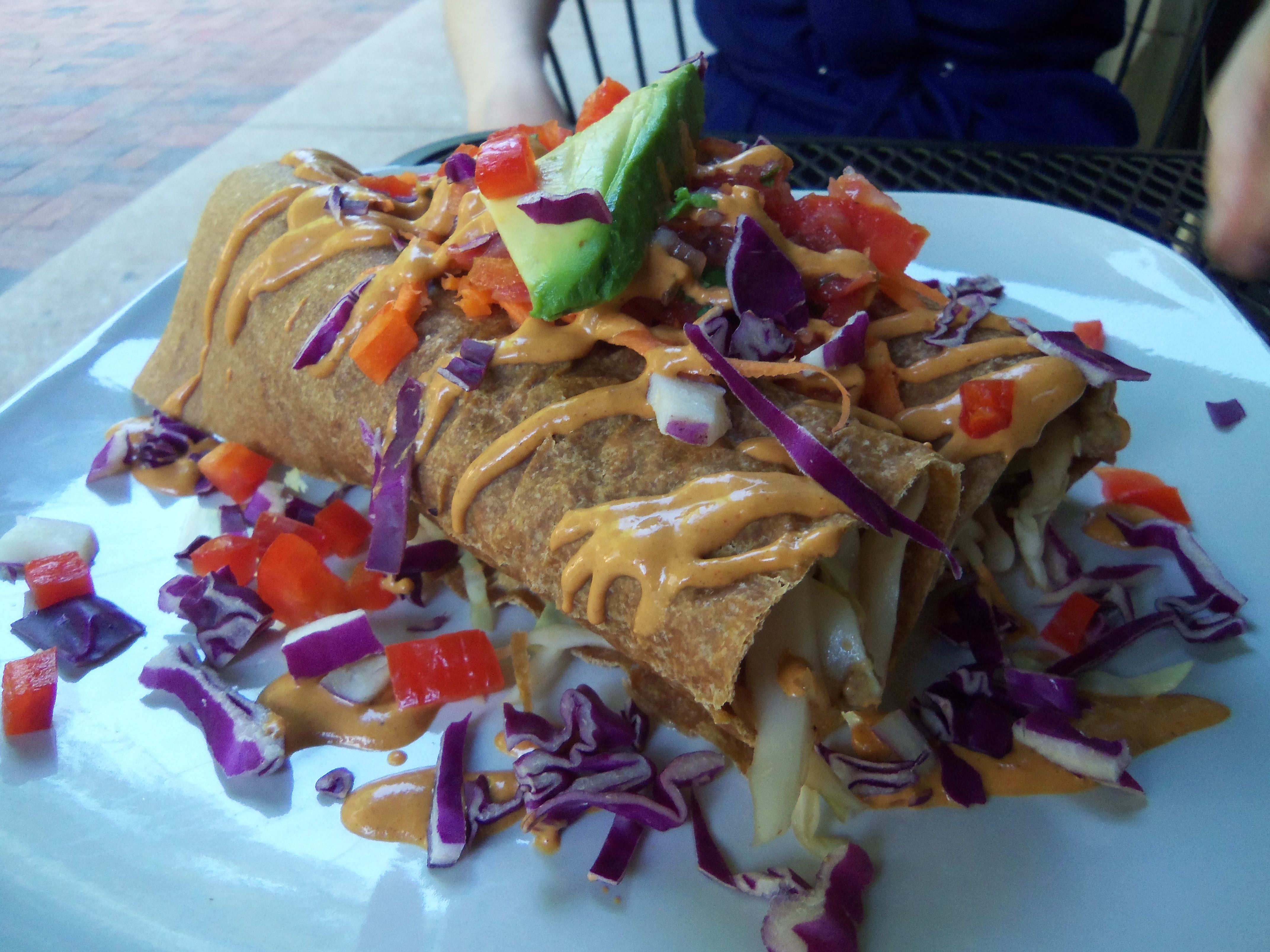 Interestingly, my favorite part about this dish was the fake cheese…It tasted so real! And I was impressed that the dish managed to recreate the same flavors found in other Mexican food, without all the oil and fat. There might have been a tad too much cabbage, but the other ingredients were fresh and well-proportioned.