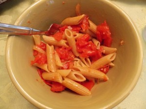 But today, for the first time in awhile, Mollie and I were both at home for lunch. She is taking a week off work before going back to school, and I’m preparing for my move to Chicago. We were debating about what to eat for lunch when Mollie suggested making pasta. I was a little surprised, but then realized that enough time must have passed, and both of us were ready to try again. The time, as it seemed, was now.
