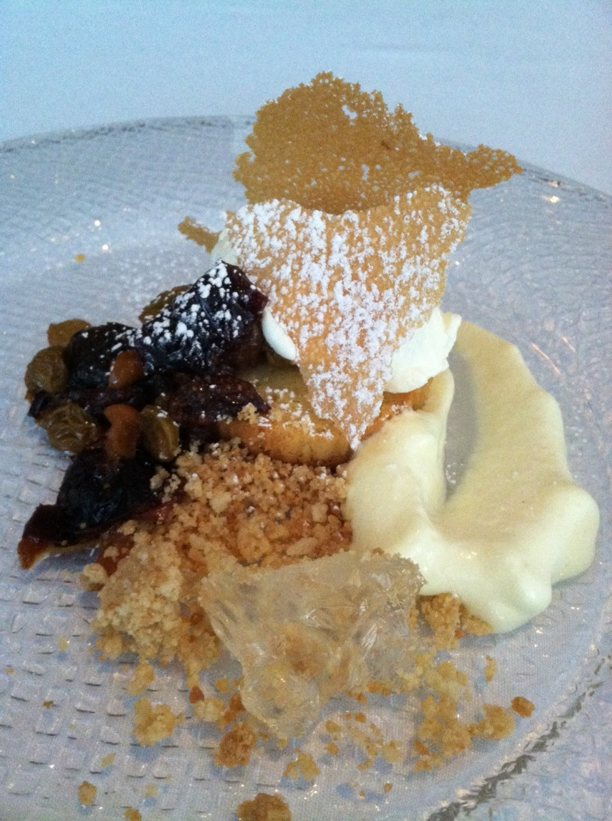 The financier was served with a dollop of cream on top, but I liked dipping it in the brown butter sauce. The golden raisins were plump and juicy, and I’ve never tasted better liquor-soaked prunes…They were sweet with just a subtle hint of alcohol. I wish I could eat all my fruits that way…