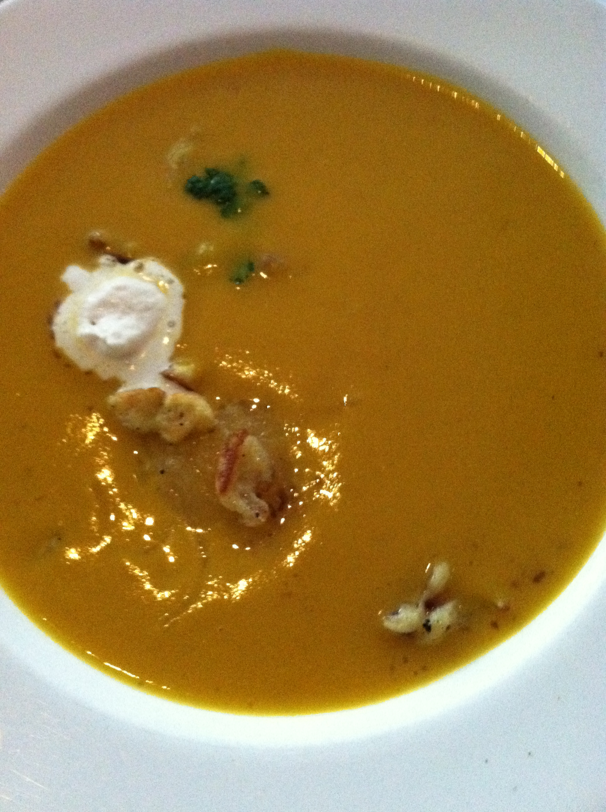 However, like any good meal, this one will stay with me for awhile. I’m sure when I’m reheating pasta in the microwave during the busy weeks ahead, I’ll remember the creaminess of the squash soup, the soft napkin in my lap, and the company of a good friend. And that, to me, is almost as good as the meal itself.