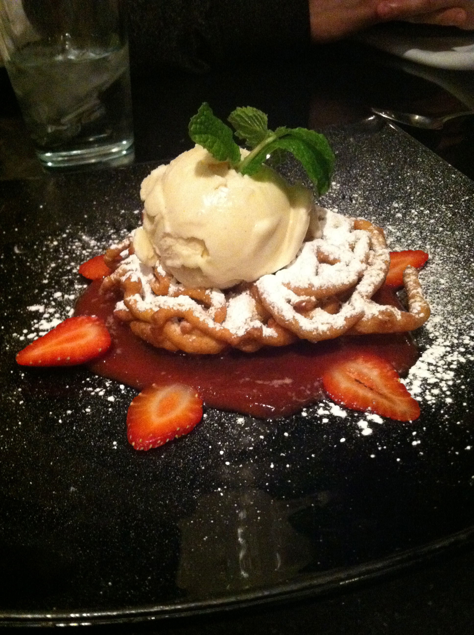 The next night, we met up with another one of Namita’s friends at a restaurant in Manayunk, a neighborhood in north Philadelphia. I loved Manayunk because even though it’s close to the city, it feels like a small town. There are quaint shops, bakeries, and restaurants all along a main street. We went to Derek’s, a restaurant and wine bar with tapas-style plates. For dessert, we ordered the strawberry funnel cake with powdered sugar and vanilla ice cream. The menu said the cake was “carnival style,” but this wasn’t your average state fair dessert: