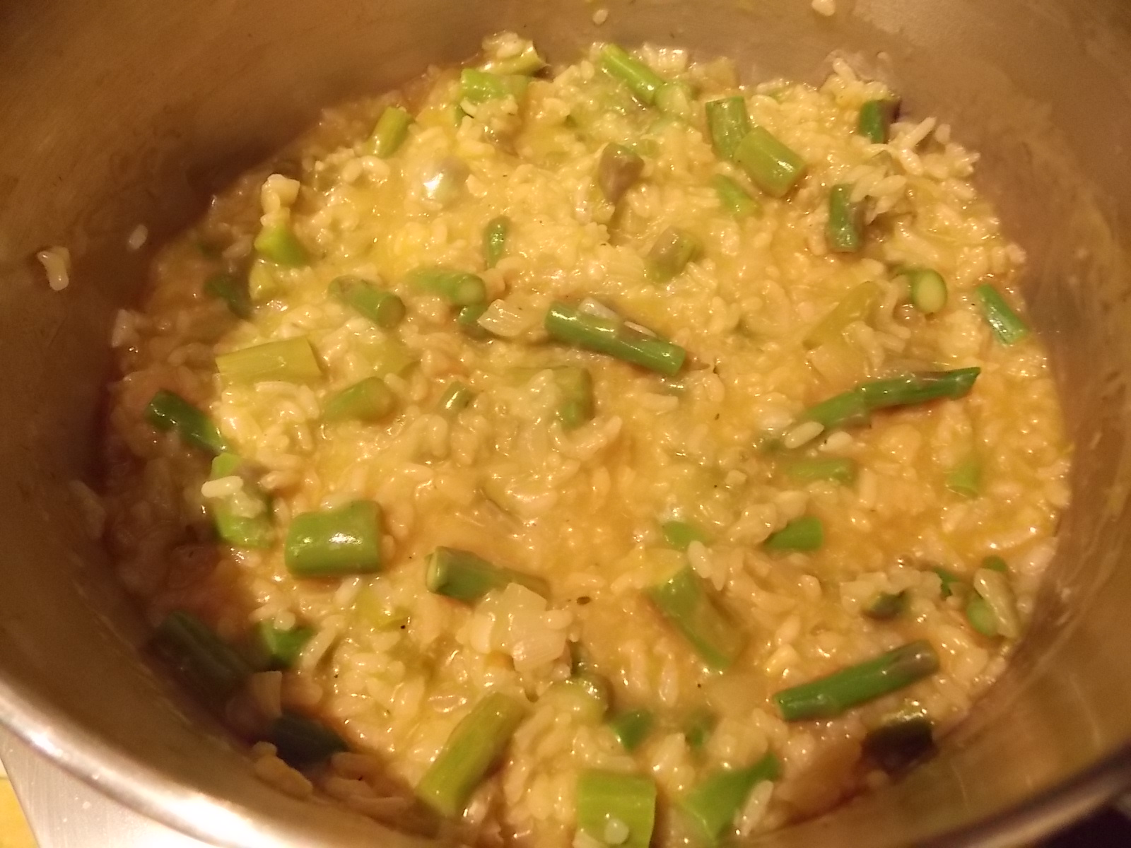 - Stir the blanched asparagus into the rice and heat through. Serve.