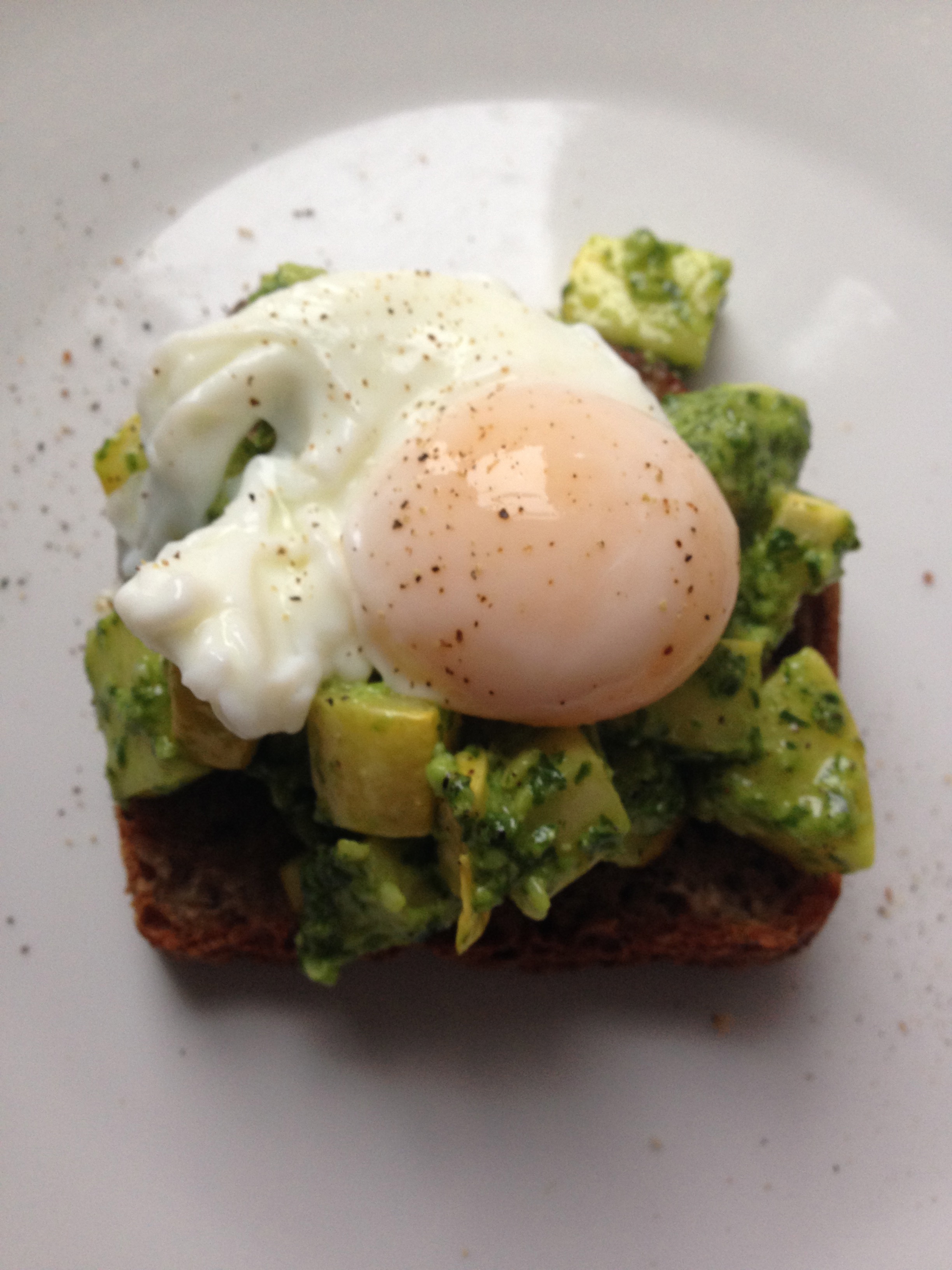Then, I poached an egg (a favorite pastime) and layered it on top of mountains of squash tossed in pesto.