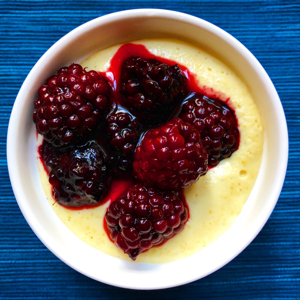 Sweet Corn Vanilla Pudding with Blackberries