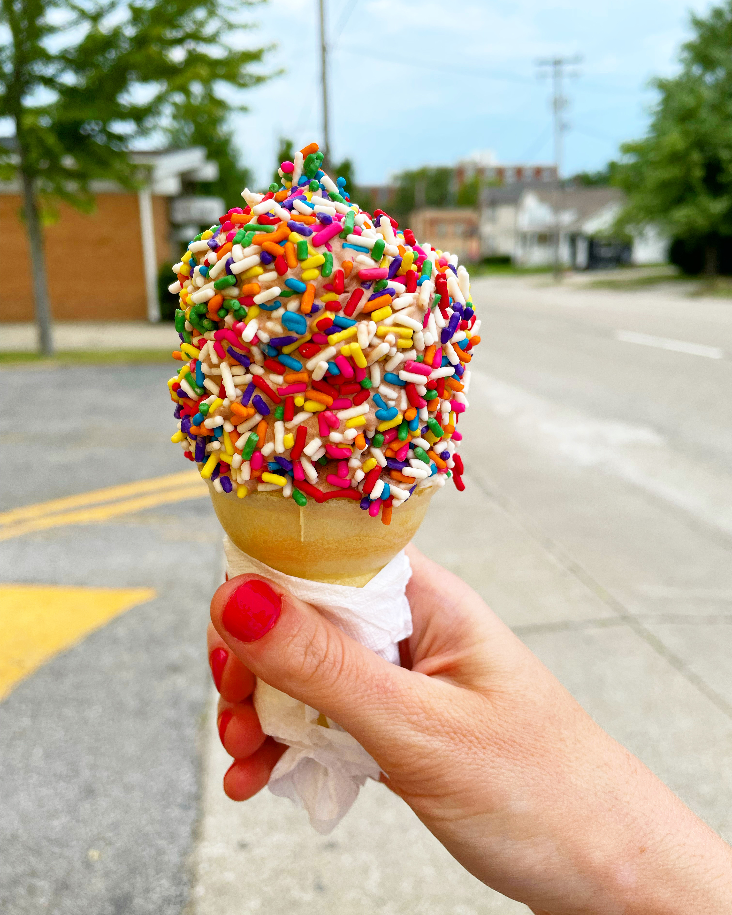 Also, while you’re in Bloomington, don’t miss Gene’s Dairy Delight. We stopped there after dinner and the soft serve was incredible. I got a twist with rainbow sprinkles and Jim got a chocolate malt.