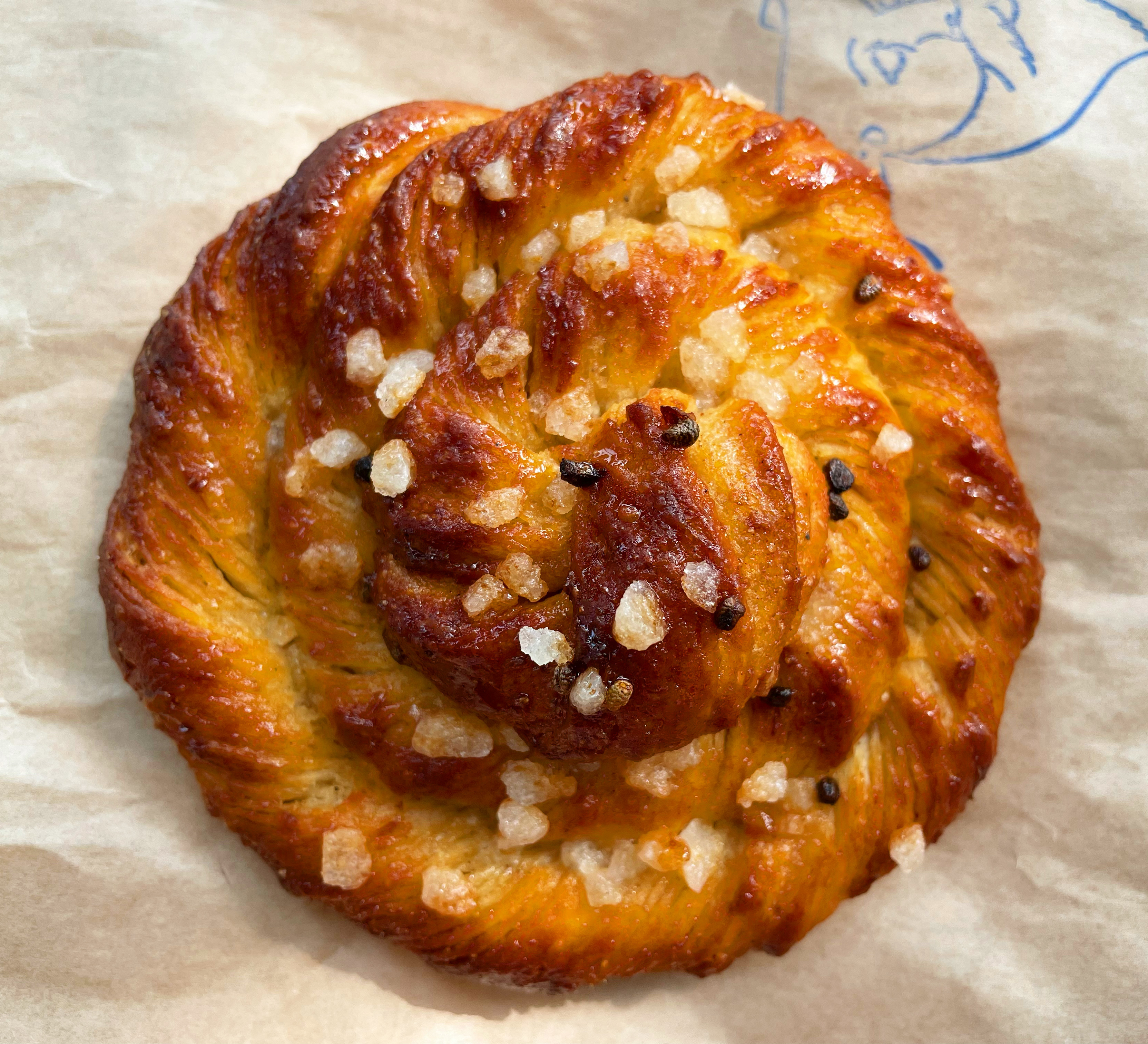 I’ve wanted to visit Lost Larson for *years*, but I never made it because Chicago is huge and Lost Larson is in Andersonville, north of downtown and difficult to get to on public transportation. This time I had a car, so the morning we went to the beach, I made Jim stop at Lost Larson so we could get breakfast. I got the Swedish cardamom roll and an iced coffee. We ate them in the park near the lake. A woman walked by and said we looked French. Oui, madame.