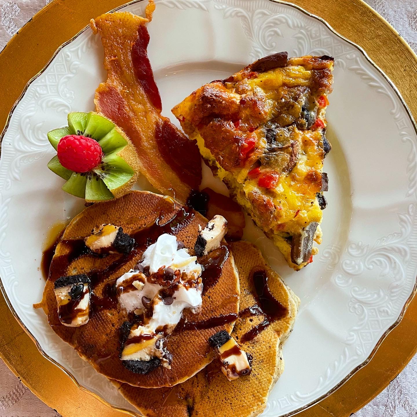 You can easily do the drive from St. Louis to Chicago in a day, but if you want a leisurely route with some small-town charm, I’d recommend stopping for the night in Bloomington, Illinois. We decided to drive up Thursday night and stay at the Vrooman Mansion, a historic house that’s been converted into a B&B. It was definitely worth the stop. The inside is so charming; it really feels like you’ve stepped back 100 years. Also, the breakfast is incredible. We had local grilled peaches with homemade granola, frittata, and turtle pancakes. Everything was so delicious. It was honestly better than some of the restaurant meals I’ve had recently.