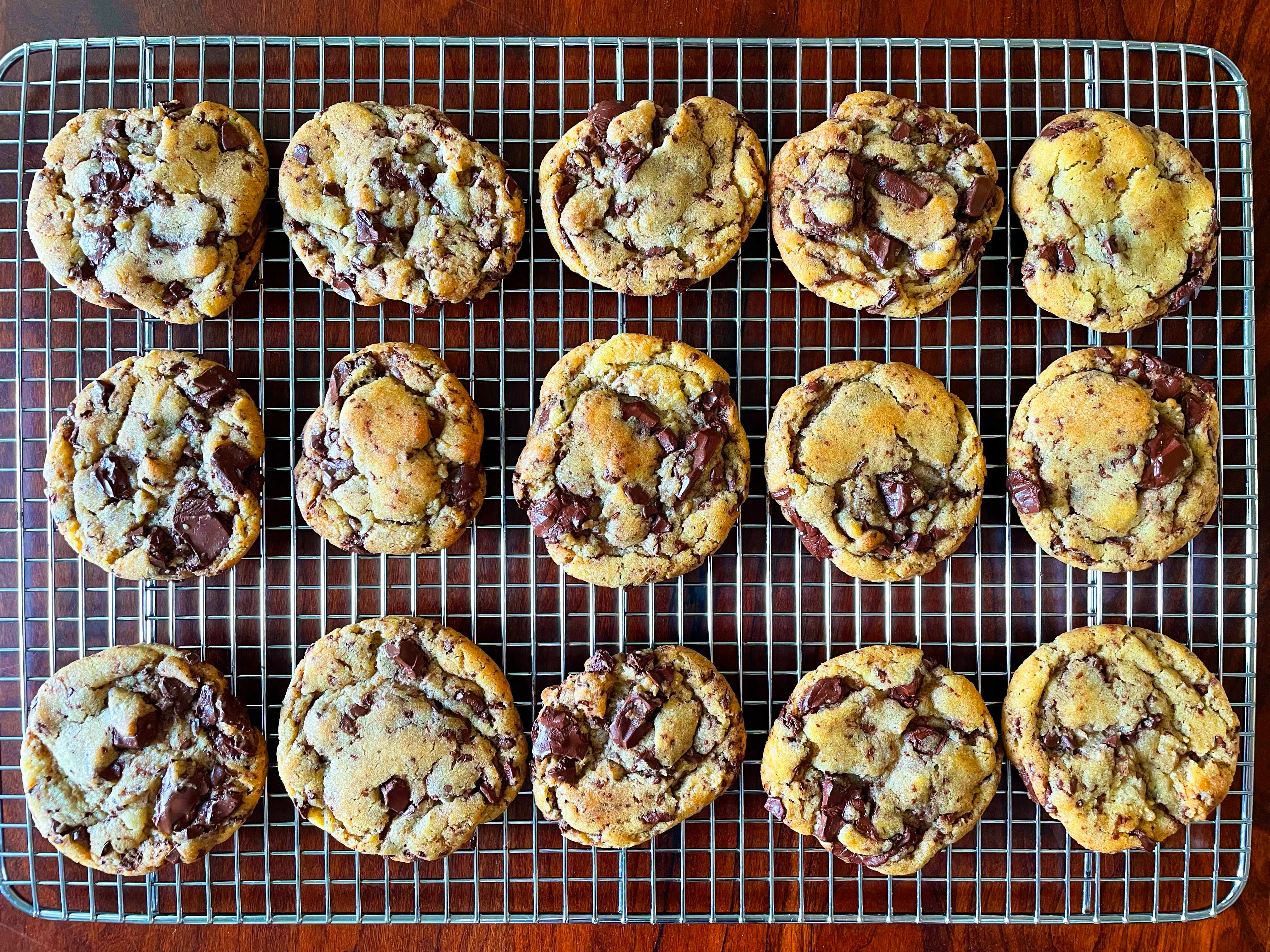 Finally, as is true with so many things in baking, quality chocolate makes a difference. I like to use semi-sweet Guittard, which you can get at Whole Foods or other specialty grocery stores. I’ve had a lot of people tell me they can taste the difference, and it makes me feel better about spending that much money on chocolate. In cookies, as in life, sometimes you have to pay a little more to get the good stuff.
