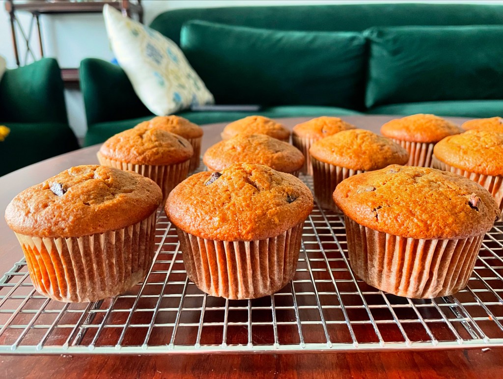Use an ice cream scoop or large spoon to portion the batter between the paper liners. Bake for about 15 minutes, or until the muffin tops spring back to the touch. Cool completely. Enjoy!