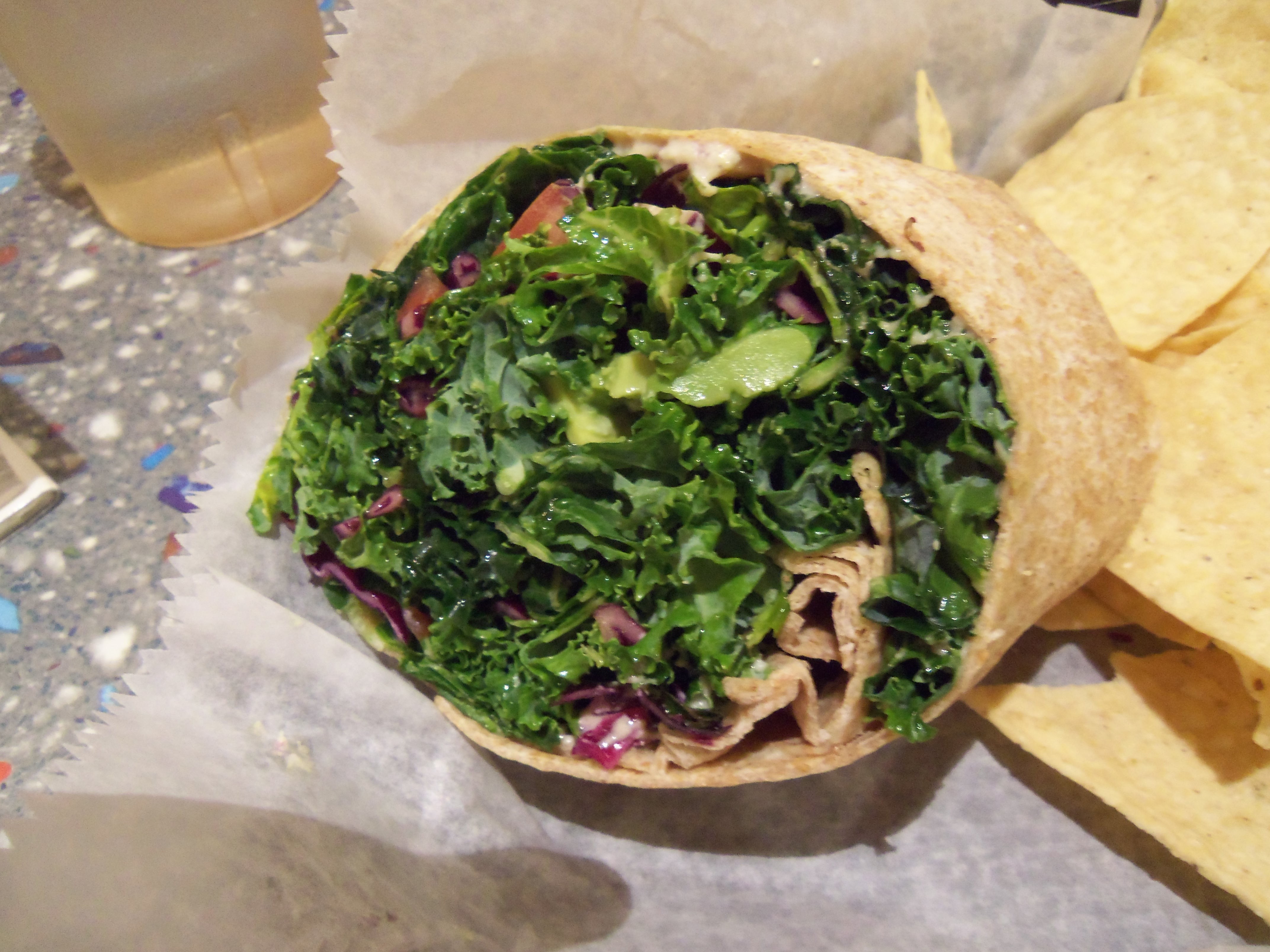 I will admit, it’s easier to roll a taco without the kale; its springy texture makes it harder to squish into a tortilla shell. But I’ve eaten a kale wrap before, so I was determined to make it work.